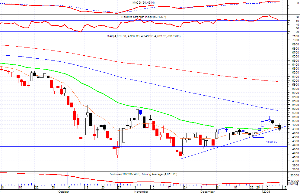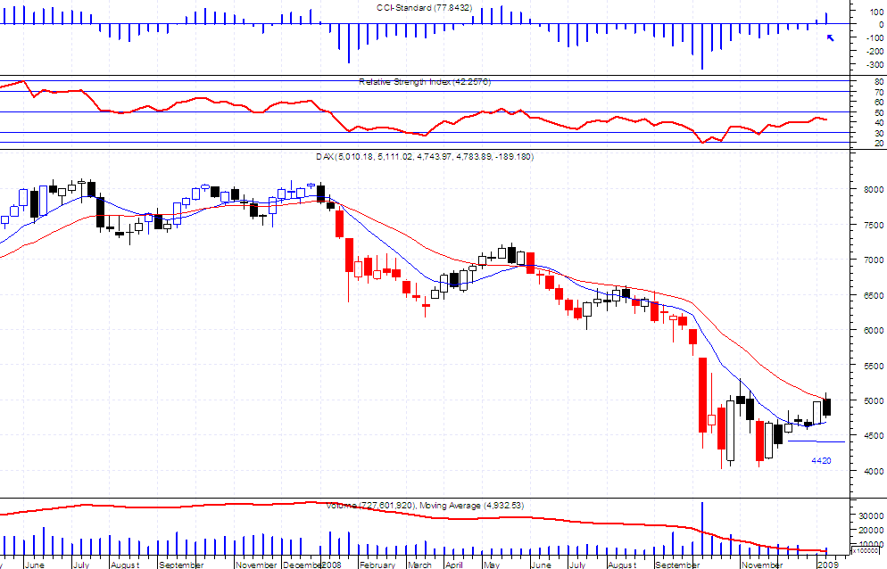 ''…..Sytuacja analogiczna do Sp 500, na tygodniowym wykresie ostatnia biała świeczka zapowiada jak może wybic się sp500. Dax nie ma jednak tak silnej formacji tygodniowej jak objęcia hossy........być może w tym tygodniu bedzie zachowywał się nieco słabiej niż sp500......najbliższe wsparcie to 4820 pkt. ….''