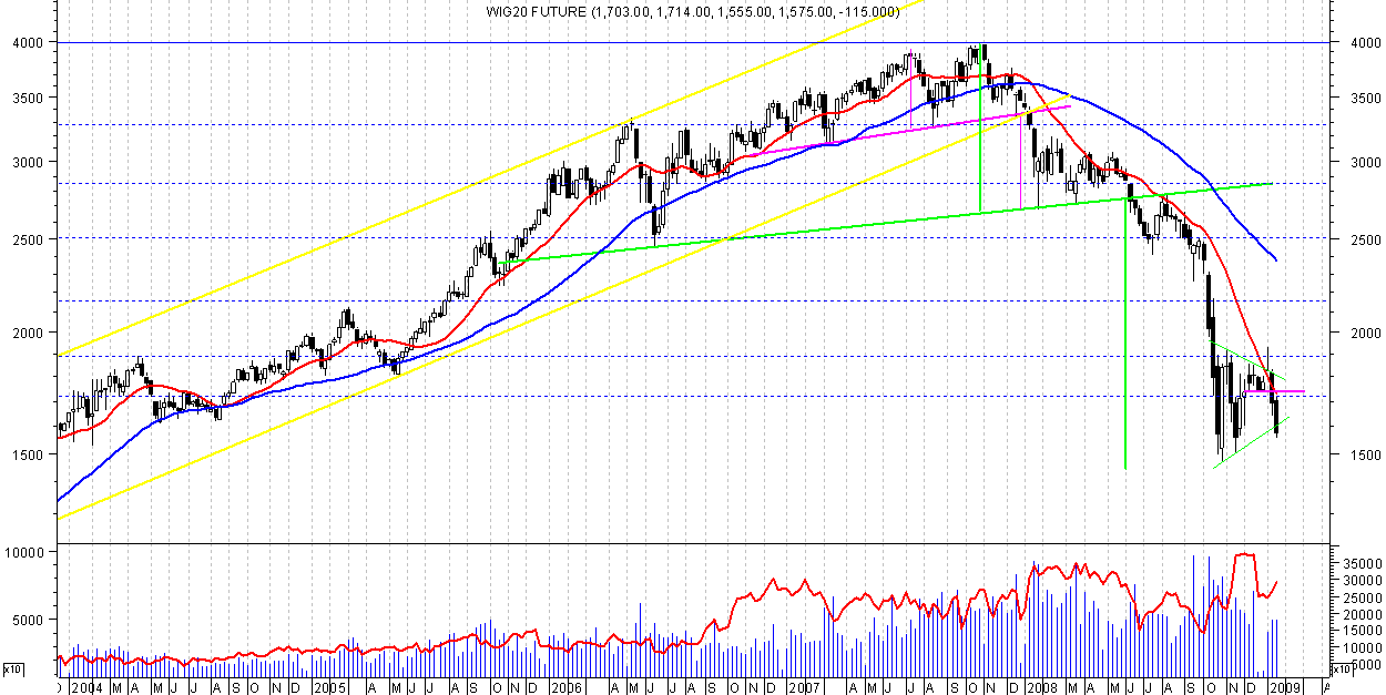 Jednocześnie na obecnych poziomach pojawia sie popyt generowany przez polskie instytucje finansowe, które w X i XI w analogicznych sytuacjach wyłożyły b. duże środki w obronę rynku. Dalsze spadki spowodowałyby ujemne stopy zwrotu z ówcześnie zajętych pozycji.