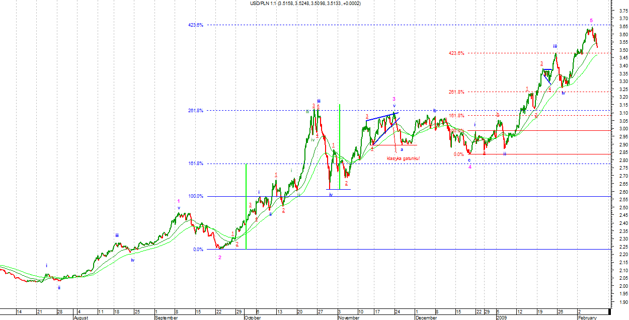 Mie napisał(a):a propo usd- pln, pozwole sobie zwrócić uwagę, iż nurtuje mnie przy Twoim rozpisie wielkość iv niebieskie do ii w 3 różowe. Fala wyższego rzędu mniejsza od niższego + proporcje. Nie znaczy to abym miał lepsza koncepcje, a nie ukrywam zastanawia mnie to.