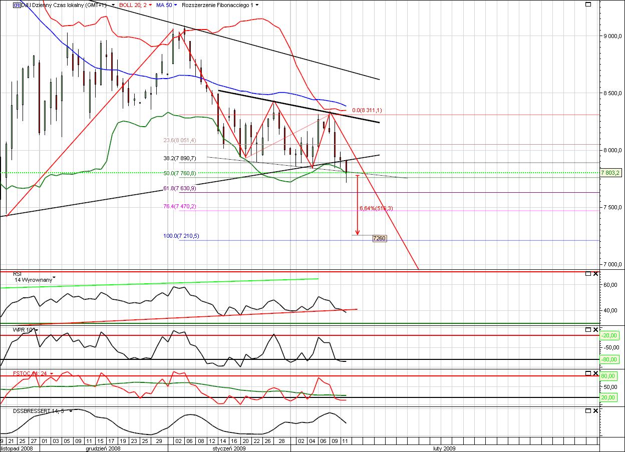 Faktycznie DJ nie wygląda za ciekawie szykuje zmiana trendu - przyspieszy spadkowy???Bolinger na przewężeniu.