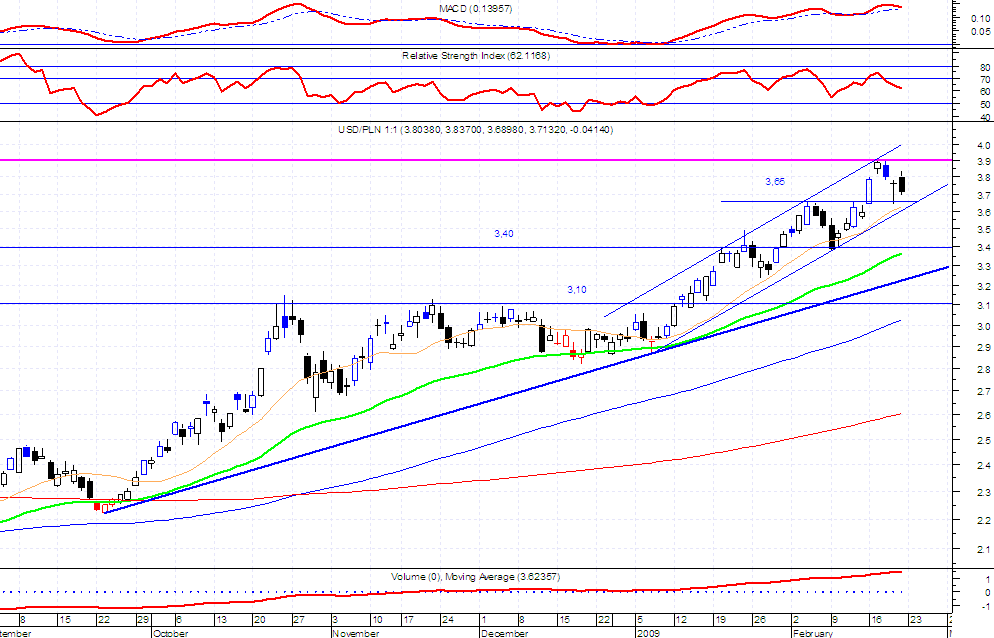 Warto obserwować wykres usd/pln tutaj obrona poziomu 3,65, możliwy test maxów. W przypadku przełamania 3,40 spadek w kierunku 3,40 i 3,10