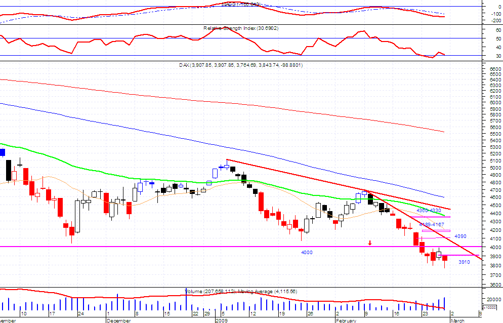 Day- ''..potwierdza wykres week, tutaj najbliższe wsparcie to 4000 pkt, opory to połowa czarnej 4090, i dwie luki spadkowe 4189-4167, 4360-4330...'' po drodze opory to 3910 i mega ważny 4000 tysiące.