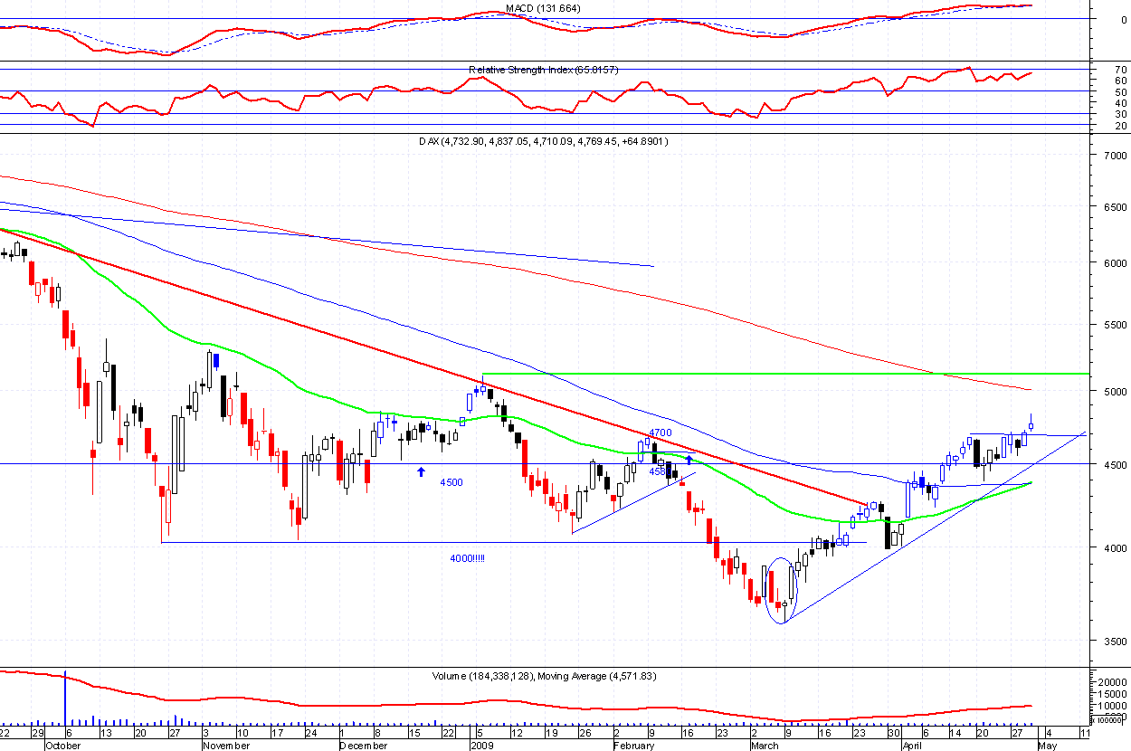 Day: Wygląda bardzo ładnie , pokonaliśmy 4700 pkt , obecnie na 4690 ważne wsparcie . Obecnie wyraźnie ponad ma15 i ma45 – tutaj sygnał kupna,wyjście ponad ma100 , która stanowi teraz ważne wsparcie. Trend na razie niezagrożony, wsparcia to 4500, 4360 i 4280. Imo najgorsze co może spotkać byki to wahnie w przedziale 4500-4700 pkt. Ma 200 na 5000!