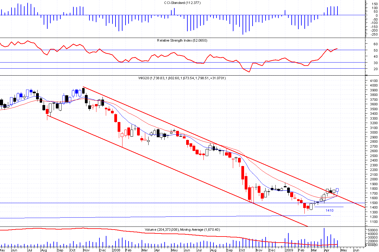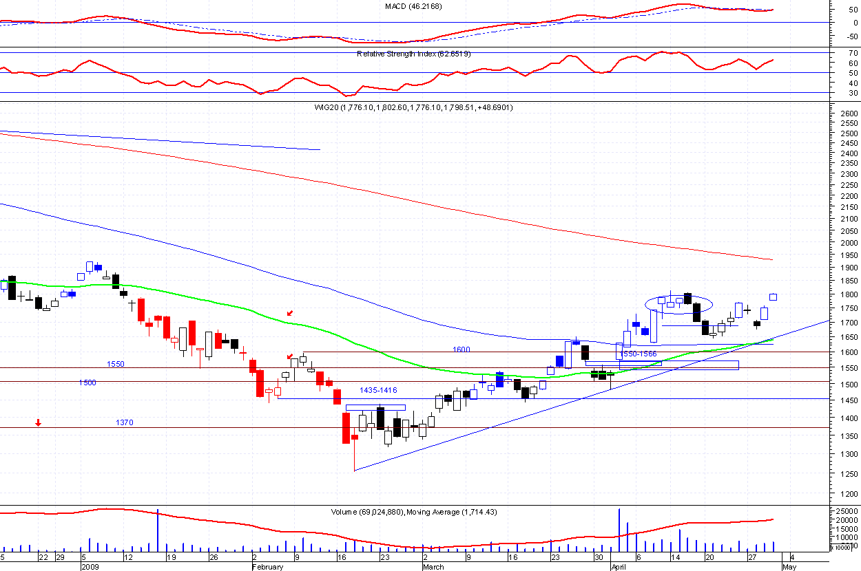 Week: Wykres mówi sam za siebie. ''..Imo najmniejszy wymiar kary dla misia to poziom 1900 pkt (tam dopiero fib 23%) .Jeśli obroni się poziom 1410 możliwa kontynuacja zwyżki nawet w okolice 1900 pkt.....''. Jeśli pokonamy szczyt na 18-8 pkt to droga na 1900 otwarta. Ostatnia biała świeca potwierdza pozytywny scenariusz. Wsparcia 1755, 1732,1700.