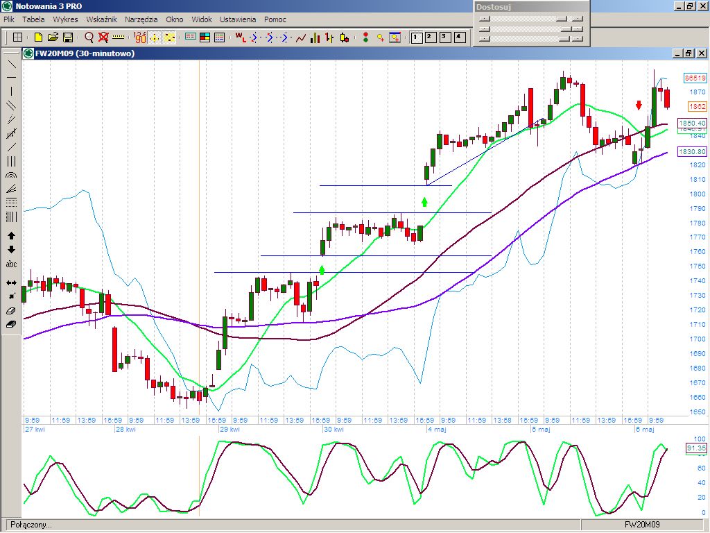 stop loss ruchomy: czekamy na przecięcie średnich opis w temacie '' Jak grać system opartym na 3 średnich kroczących''