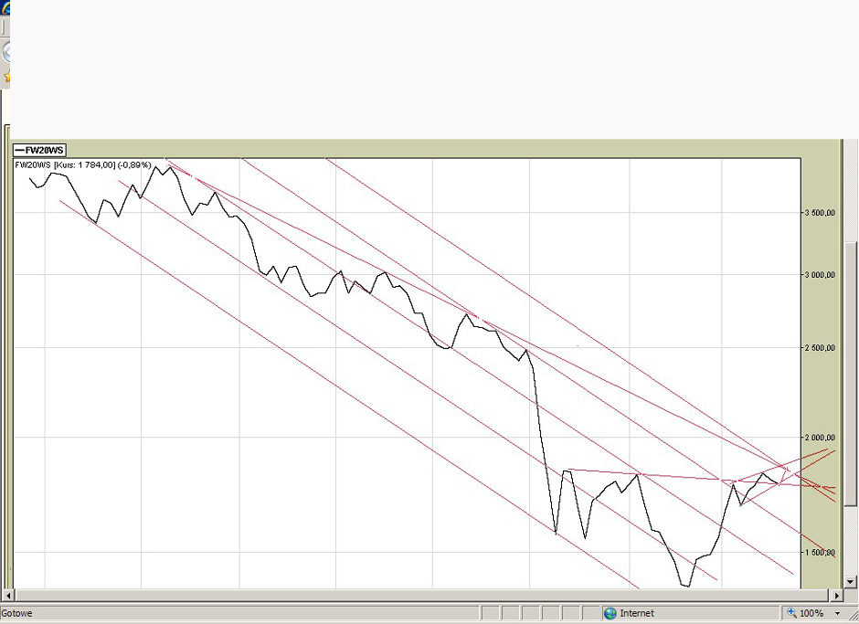 Scenariusz na piątkową sesję jest już trudniej przewidzieć. Przede wszystkim LOP zmalał niemal o ... 8.000, co może oznaczać, że duży gracz zrobił co zamierzał i teraz może chcieć wykonać ... kolejne kółko. Korekcyjnemu odbiciu może sprzyjać ponadto (oprócz prognoz szacownych użytkownikow tego forum w poprzednich postach) dotarcie indeksów USA do wsparć wyznaczonych linią szyii orgr oraz spadkowa 5-falowa struktura fal. Niemniej sytuacja jest nerwowa i już zejscie na gpw poniżej dzisiejszych minimów i możliwość przełamania wsparć wynikających z dolnego ograniczenia klina i luki z przełomu kwietnia/maja powinny być sygnałem ostrzegawczym trwania "własciwej" i długo wyczekiwanej korekty.