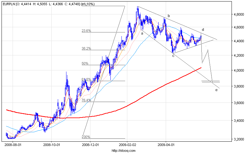 jeżeli to trójkąt to większe w tym przypadku jest prawdopodobieństwo wyjścia w górę. Tak mówi klasyczna AT.