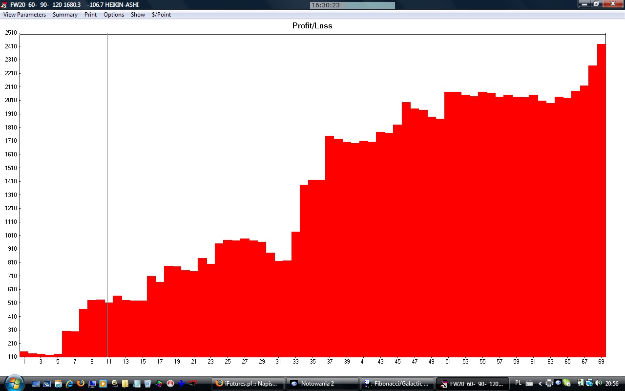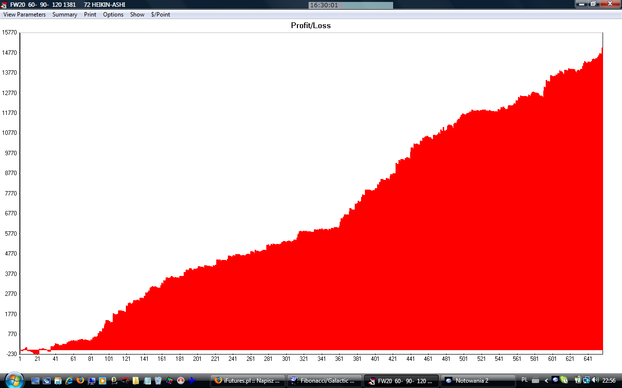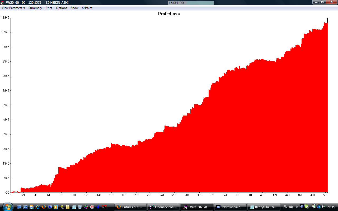 Wyglada ciekawie. Mam tylko watpliwosc co do realnosci oiagniecia 2500 pkt w pol roku - a tym bardziej osiagniecia takich wynikow w realu. Przetestu system np od 2005 (bez zmiany parametrów) roku to ci powie dopiero cos wiecej, bo zapewne sam wiesz ze zabardzo zoptymalizowany system szybko sie dezaktalizuje