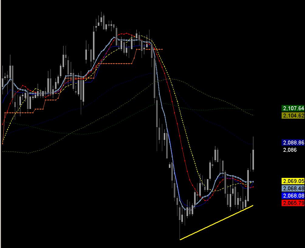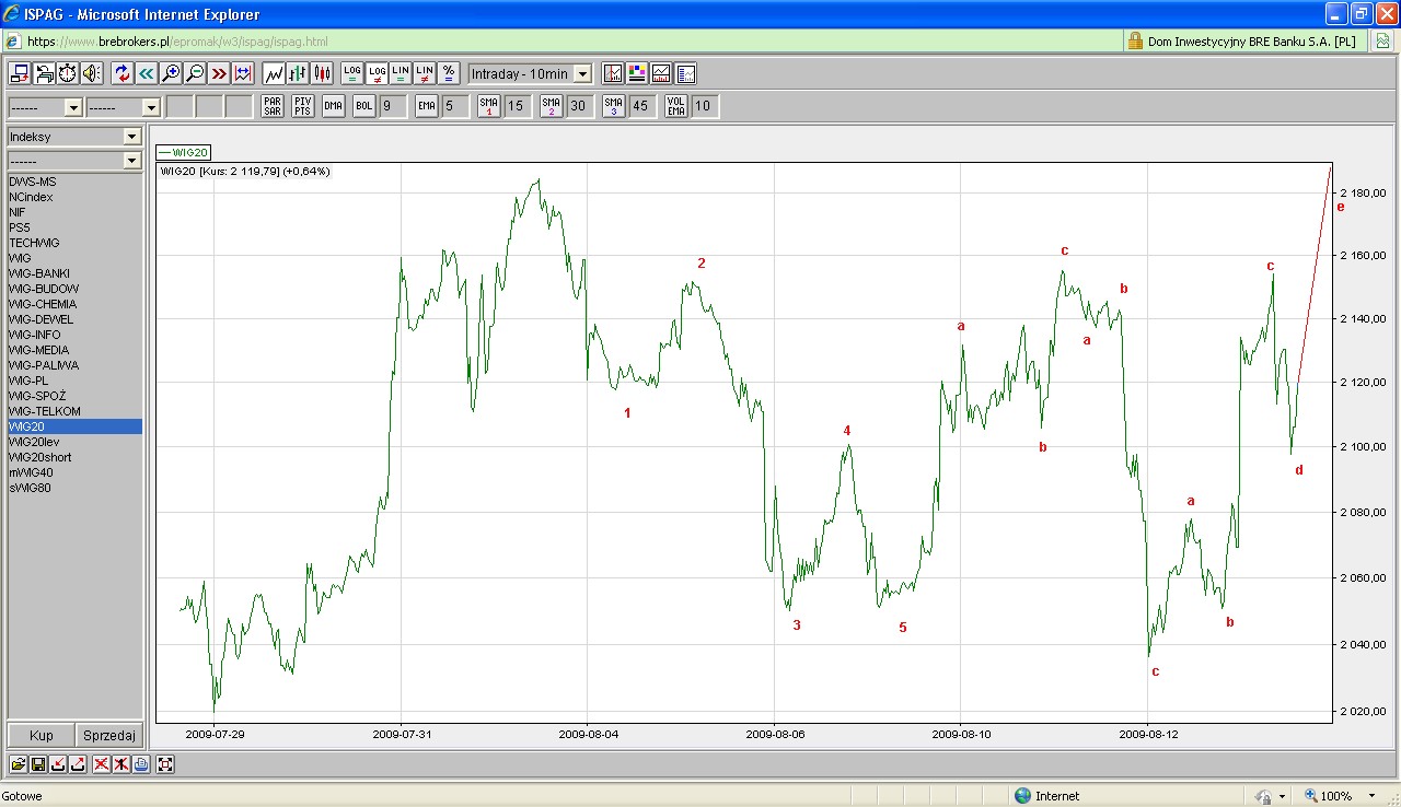 Sesja czwartkowa powinna zadecydować o kierunku dalszego ruchu . Jeśli bysie będą miały dość siły aby przełamać 2100 i dłużej się ponad tym poziomem choćby pokonsolidować to wygenerowane zostaną ponownie sygnały L na dłuższych interwałach (30' 60') . Jeśli nie będą tak mocne to ja traktuję dzisiejsze wzrosty jako korektę spadków i misie powinny porządzić przez najbliższy czas.