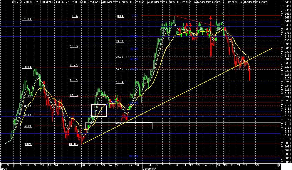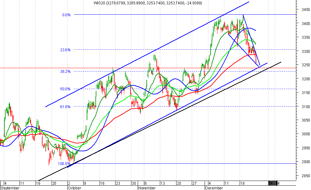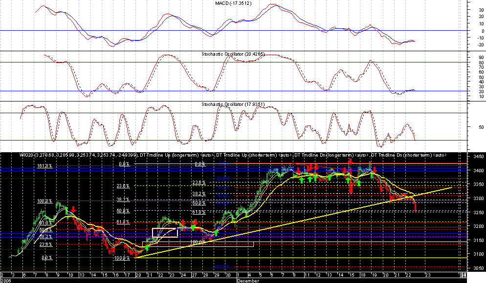 Prawie ca?a dzisiejsza sesja to mŕcz?ce trwanie na pozycjach obronnych, ma?y obrˇt i niewielkie zmiany kursu. Po otwarciu notowa˝ za oceanem, kurs kontraktˇw na wig20 zacz?? spadaŠ a w Âlad za nim ruszy? rynek kasowy. Zanim przyst?piono do akcji ratowniczej byliÂmy ju? 25pkt ni?ej. Taki ruch nie powinien byŠ brany na powa?nie przy Âwi?tecznej sesji i ma?ych obrotach, ale nie Âwiadczy on dobrze o kondycji rynku. Na koniec notowa˝ rzucono woreczek akcji i baza rozci?gnŕ?a siŕ do +75 pkt. Nie wiem co o tym s?dziŠ, jestem tylko misiem z ma?ym rozumkiem.
