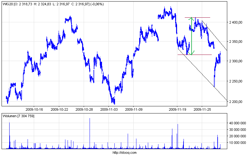 Kluczowym poziomem są okolice 2300, gdzie wychodzi równość fal A=C oraz zniesienie 0,618. Spadek poniżej może oznaczać, że robimy 1,2,3 w A zamiast ABC, natomiast wyjscie powyżej 2360, czyli domniemanej podfali 1 w C, może oznaczać zanegowanie negatywnego scenariusza lub traktować notowania tego tygodnia jako szerszą korektę złożoną po zakończeniu której w grudniu możliwe są nowe szczyty.