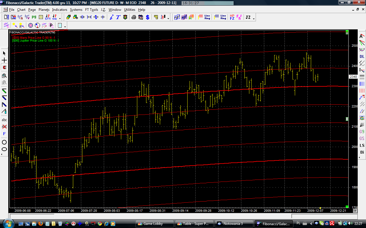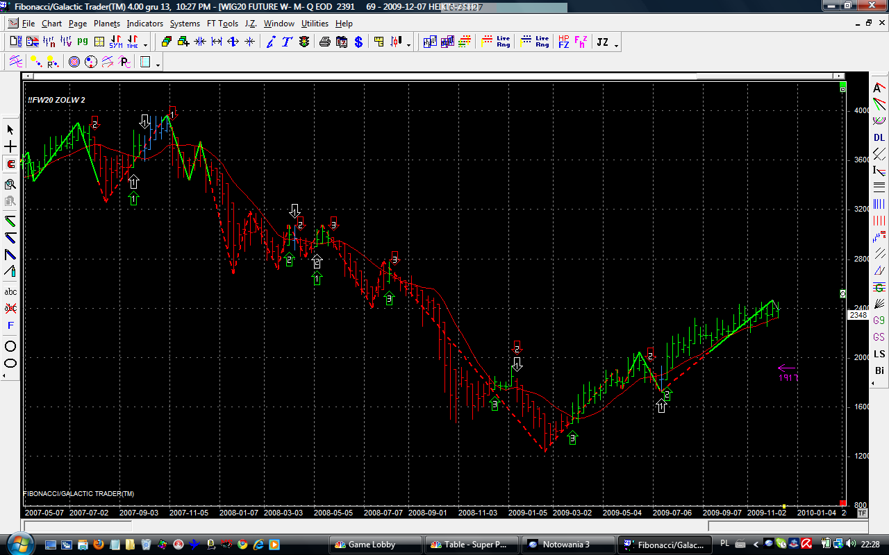 Niestety atak na kolejny opór przebiegający na poziomie ok 2480 nie udał się, co skutkowało odejściem. Warto jednak zauważyć, że spadki zahamowano przed linią wsparcia. Może to oznaczać, że rynek jeszcze nie zakończył ruchu spadkowego, lub jest chęć do ponownego zaatakowania szczytów. Tego niestety nie wiem. Idealnie byłoby dojście do linii wsparcia i stamtąd wyprowadzenie dalszego ataku.