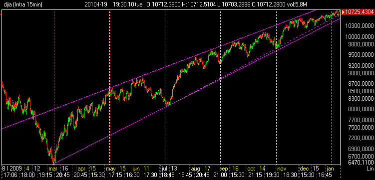 Jeszcz DJIA wraz z tym, jak zadziałała wcześniej wyznaczona kreska.