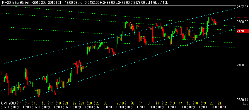 Wydaje mi się, że jeżeli Azja w nocy dołoży swoje kilka punktów w dół a po południu dane o zapasach ropy pookażą, że zapasy są ponownie wyższe to może być gorąco. Ale jakoś nie wierzę, że już jutro będziemy skutecznie testować 2445. Tę zabawę zostawimy chyba na koniec tygodnia. Skąd ta konkluzja? wyjeżdżam we wtorek na dwa dni i moje doświadczenia sa takie, że zawsze wtedy COŚ się dzieje. Jeżeli tym razem sie sprawdzi, powieszę tu kalendarz moich podróży ;)