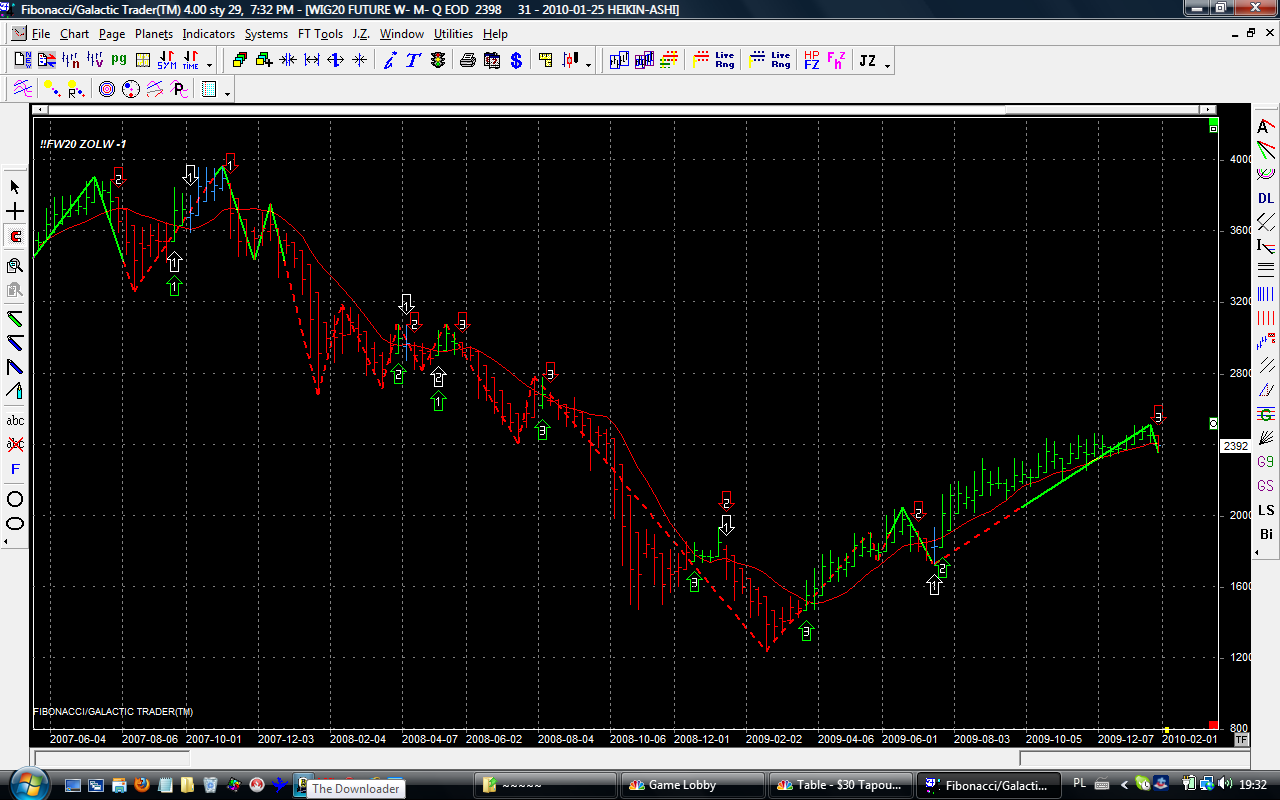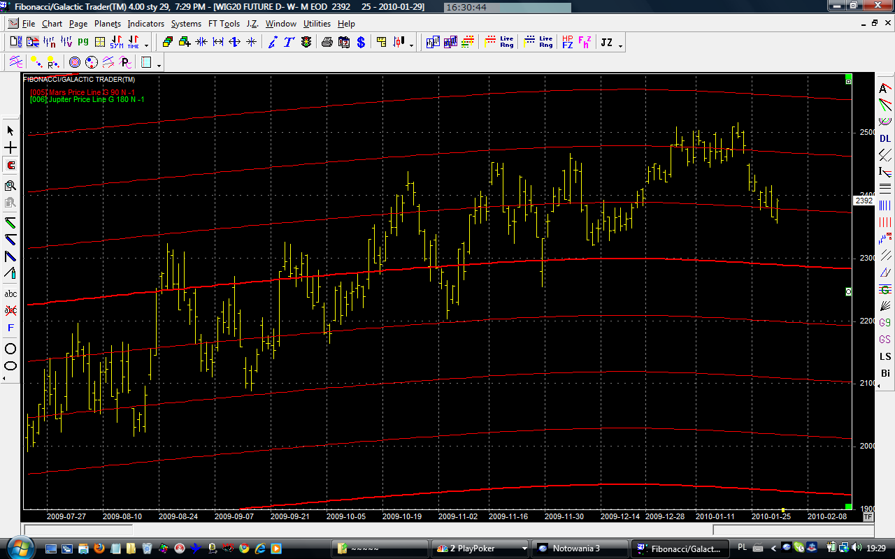 Na wykresie FW20 z liniami Marsa widzimy jednak walkę na linii wsparcia. Od jej wyników uzależnić trzeba dalsze ruchy. Jeżeli się wybroni to nie wykluczam podejścia pod linię oporu. Ze względu na malejącą trajektorie linii Marsa byłby to niższy szczyt, znamionujący odwrócenie trendu.