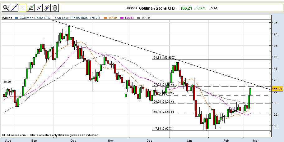Warto polukać na wykres goldmana i dywergencje z amerykańskimi indeksami. Szczyt banku wystąpił w X i od tego czasu kurs spada robiąc wielkiego rgra, podczas gdy sp500 rósł jeszcze w XII (negatywna dywergencja zapowiadająca spadki).