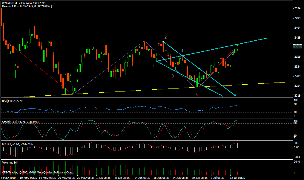 Od poczatku lipca mamy do czynienia z dosc mocnym odreagowaniem wczesniejszych spadkow, co skippy bardzo trafnie przedstawil we wczorajszych postach, ale jest to na razie tylko pullback w ruchu spadkowym i atak na nowe szczyty jeszcze nam nie grozi (podobny ruch mial miejsce w polowie czerwca i skonczyl sie spadkami) w mojej ocenie kluczowym poziomem dla SP jest 1110-1120 i dopoki on nie padnie w najlepszym wypadku czeka nas trend boczny (trojkat) w przedziale 1010-1120.. oczywiscie kto zajmie pozycje wczesniej, biorac na siebie wieksze ryzko niepewnosci ten.. ;-)