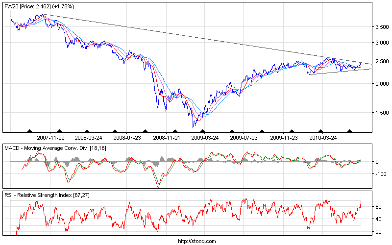 Na chwilę obecną, kiedy jesteśmy po środku między wwn. paraboli (żółte ~2300 i ~2500) ciężko mi cokolwiek prorokować - IMO bardziej przyciąga górna.