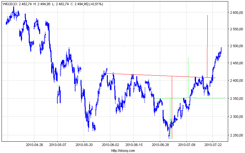 Wracajac do kresek: FiboFan (wpolczynniki 88,6% i 113%!) wchodzi w pierwsza strefe oporu 2483-2493, po prawo