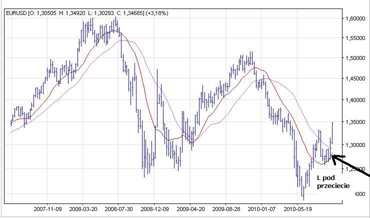 Wykresy tygodniowe. "L" brane na niższym interwale, pod przecięcie średnich tyg.