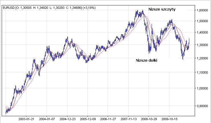 3. Brak podwójnego dna na dziennych i tyg. (często towarzyszy zmianie trendu na EUR/USD)