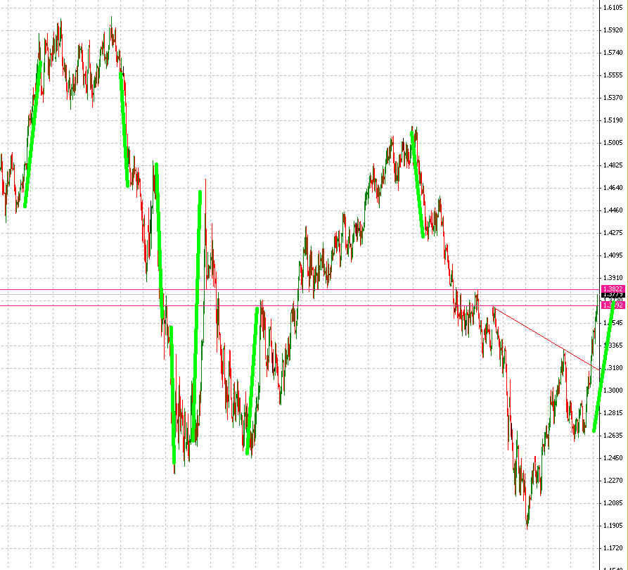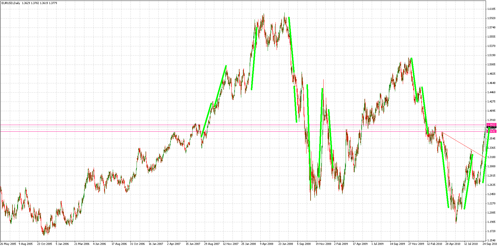 Ale musisz przyznać, że to bardzo rzadko spotykana rzecz - ten ruch idzie już od prawie trzech tygodni bez żadnej korekty, bez najmniejszej nawet wątpliwości i to dokładnie w linii prostej. To wielce komfortowa sytuacja dla inwestora, bo wystarczy patrzeć jak z godziny na godzinę przybywa pieniędzy, bez zastanawiania się czy już pora zamykać.