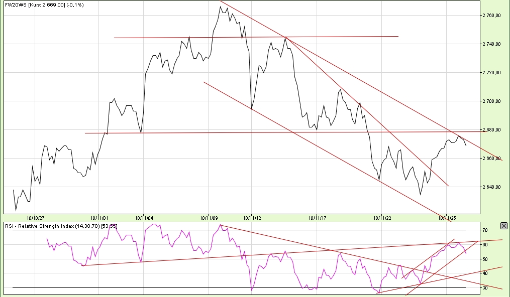 Krótkoterminowo najbliższy opór dla FW20 znajduję na poziomie 2670-80 i wyzej 2699-706. W przypadku zwiększania podaży ważne wsparcie na 2642-44, niżej ważny w mojej ocenie poziom na 2636 i 2600-05.