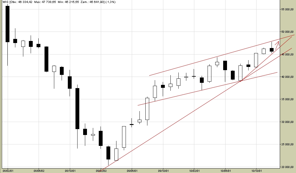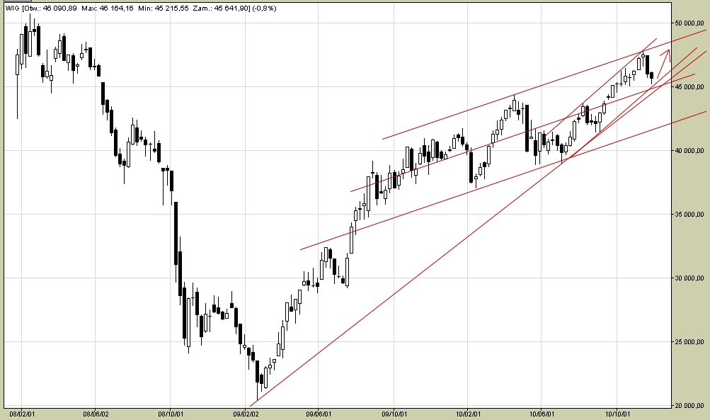 Wczorajsze zachowanie kontraktów amerykańskich może wskazywać, że jest szansa wyhamowania spadków chociaż obecnie tamtejsze kontrakty pikują. Jesteśmy w pewnej przeciwfazie - tamten rynek wygląda bardziej prowzrostowo.