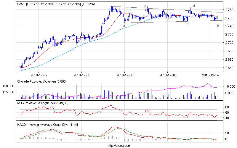W powyższym kontekście ewentualna kolejna słabość w obecnych rejonach uprawomocniłaby poważne myślenie o teście niższego poziomu. W tej chwili jednak nadal pozostajemy w męczącej konsolidacji pod szczytami, rozlicznie serii kontraktów w piątek, rynek powoli się roluje.