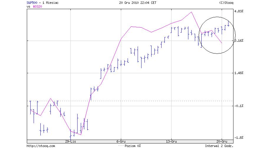 SP500 znalazło się w kleszczach dwóch ORGRów, w zależności od tego jak je liczymy jest to przedział (1260-1240, 1250-1240) wyjście górą stanowić będzie pokaz siły. Jeśli mogę się pokusić o ocenę w średnim terminie oczekiwałbym korekty, ale z wyższych poziomów niż te na których obecnie jesteśmy zarówno na SP jak i na FW (dopuszczam niewielkie poprawienie grudniowych szczytów). Przyszłości poza GeSem nie zna nikt ;-) .