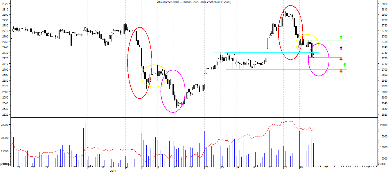 W tej sytuacji nie można wykluczyć analogii do poprzedniej fali spadkowej (kolorowe elipsy).