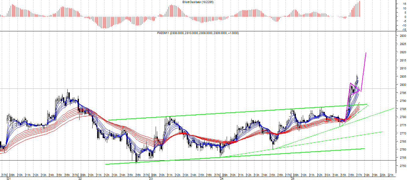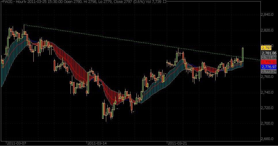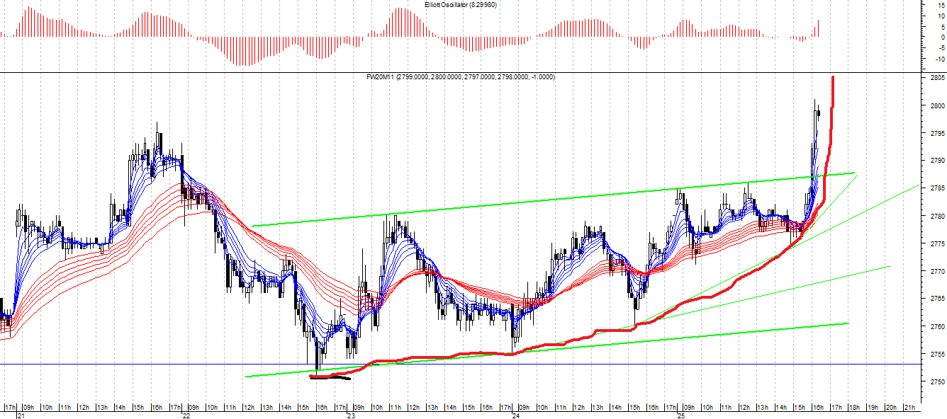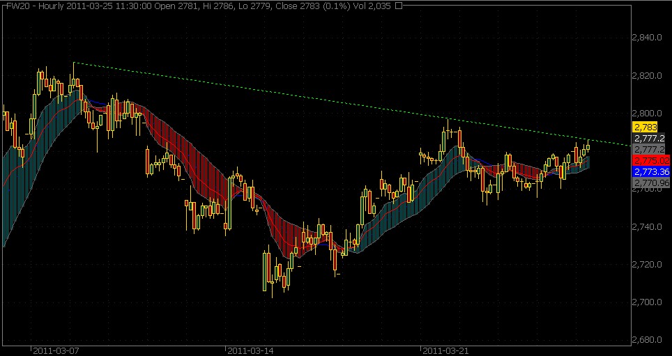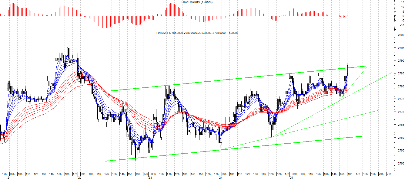 Co prawda nadal mój rysunek sprzed roku nie stracił aktualności, nie został zanegowany - i okolice 2800 są bardzo silnym oporem, co widać po opisanej konsoli (tu żółta)