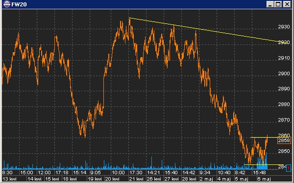 w20 wyrysował szkoleniowy podwójny szczyt, a wczorajsze odbicie w końcówce sesji, trzeba traktować jako ruch powrotny do linii szyi.