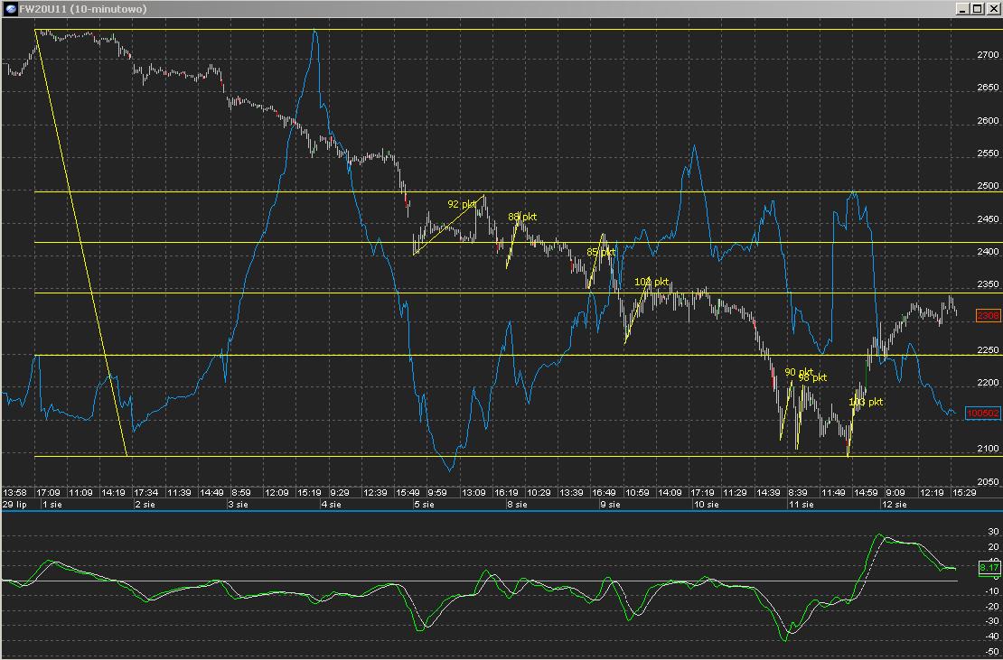 Tak czy inaczej po 3 próbach w ciągu jednego dnia w końcu za trzecim razem udało się wyjść ponad 100 pkt nad minima ruchu a to wywołało euforię. Warto obserwować co się będzie działo w najbliższych godzinach - da to nam odpowiedź na ile obecna korekta ma szanse przedłużyć się na przyszły tydzień.
