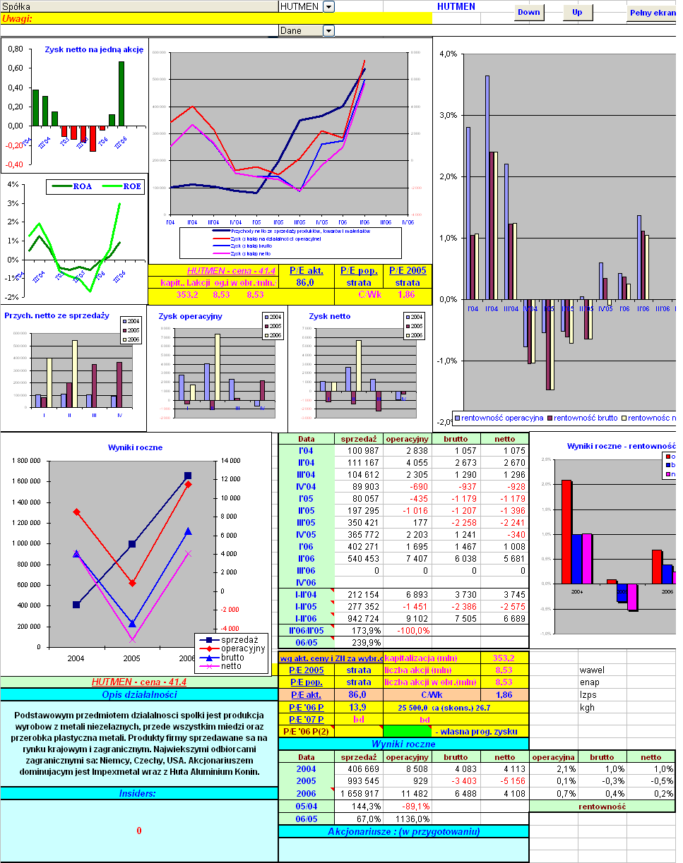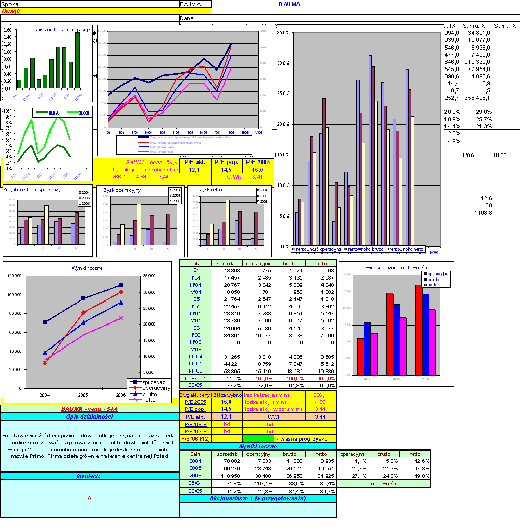 Witam. Robiŕ plik do analizy. Mogŕ wklejaŠ screeny ciekawszych spˇ?ek na ?yczenie. Pytanie czy s? one czytelne. Wklejam dla przyk?adu screen Baumy i Stalproduktu. Jezeli jest to nieczytelne, to moze nech ktos podpowie jak lepiej zapisac graficznie strone excela.