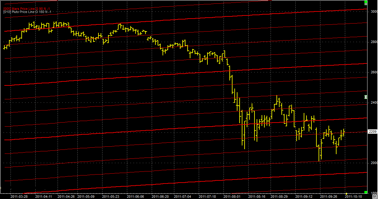 Na wykresie z liniami Marsa jesteśmy na oporze ale mamy za sobą wyższy dołek, który znalazł wsparcie na niższej linii Marsa. Niewiele brakuje do technicznego odwrócenia trendu. Konieczne jest jednak sforsowanie obecnego oporu i ustanowienie wyższej górki. Byki powinny się o to pokusić. Dawno takiej szansy na sygnał kupna nie miały. Jeżeli ją zmarnują to może zakończyć się wodospadem.