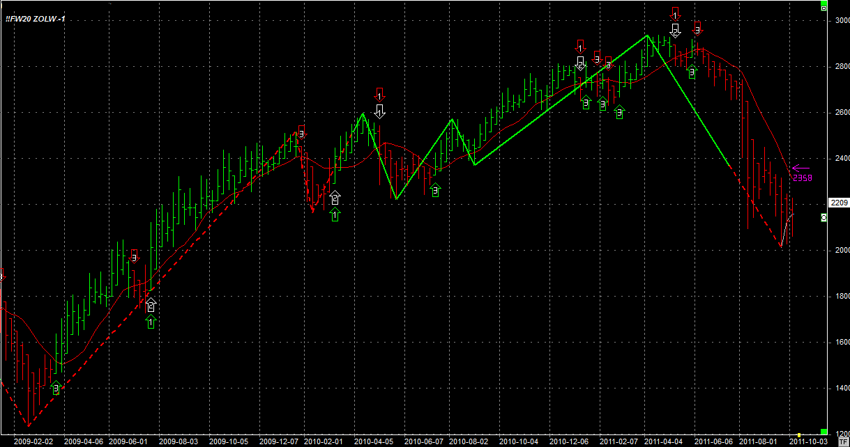 Tydzień zamknął się na poziomie 2209 pkt, 17 pkt wyżej niż tydzień temu. System Żółw utrzymuje jedną krótką pozycję sprzedaną po 2834 pkt.