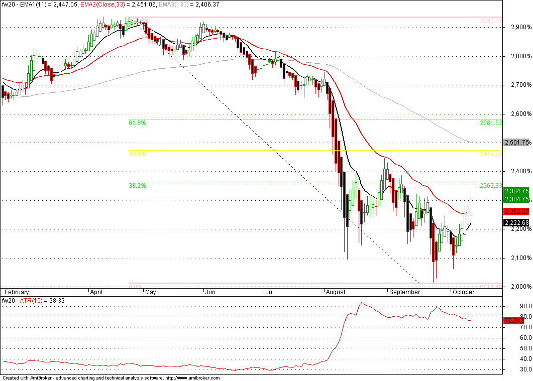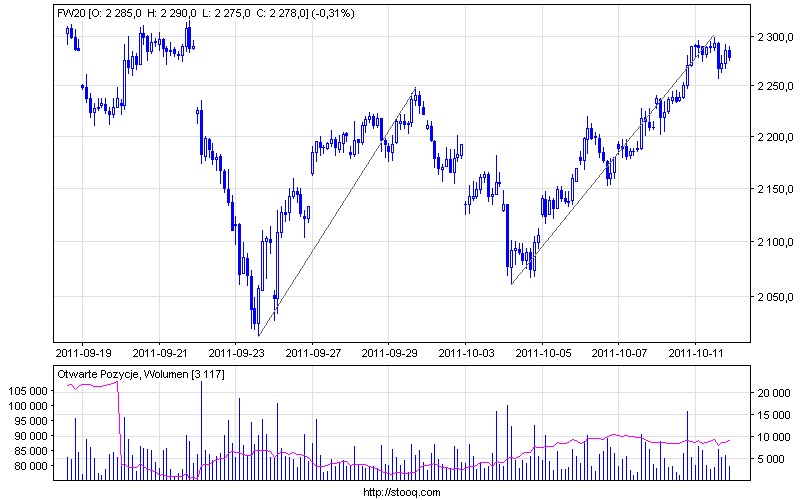 Z ciekawostek fakt że chwilę po południu powyżej 2290 stało przez 15 pkt jakieś 1400 kontraktów - jakoś nikt się nie zdecydował skutecznie przekopać zapory (tak ładnie rosła cena i lop), a zakończona odwrotem próba nie świadczy o determinacji popytu w wychodzeniu na nowe maxy.