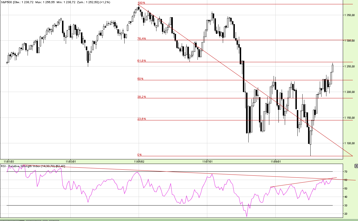 "Nasz" korsarz rzeczywiście trzyma się dzielnie, przetrzymał już niejedną korektę od 04.10:lol: Zauważmy że nie robi tego sam - nasz WIG jest dobrze skorelowany z innymi indeksami. Pamiętacie jak się pojawił? Prasa pisała, że S&P zaraz wkroczy w rynek niedźwiedzia. Czyżby z tego wniosek że zamierza wyjść jak wszyscy będą mówili o nowej hossie? Trzeba przyznać że ma świetny przegląd sytuacji makro tym bardziej że rynkami rządzą ostatnio politycy. Pozycja na pewno zabezpieczona back-to-back więc nie zarabia tyle ile by wynikało z prostego przeliczania punktów ale dobry kierunek z trendem. Może też mieć dobrze przetestowany algorytm, który go trzyma i każe mu wyskoczyć w odpowiednim momencie. W środę test - jak politycy nie dostarczą to optymizm może wyparować. Jakie z tego nauki dla nas oprócz obserwacji koncentracji?