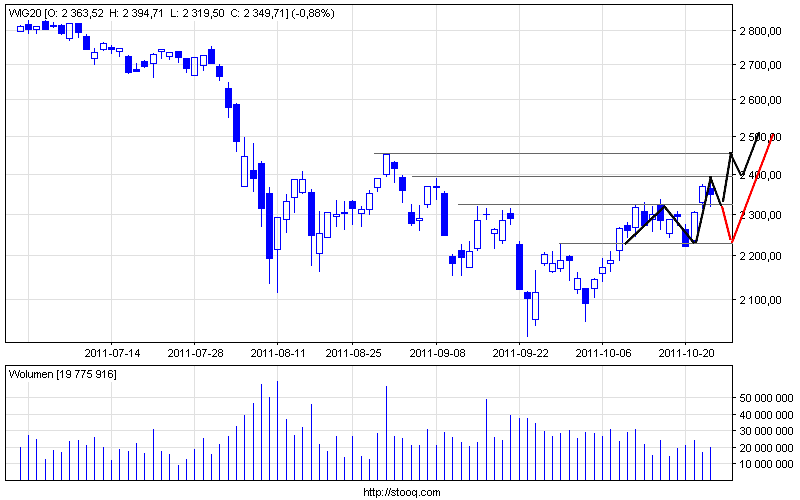 Ok, zejdzmy na ziemię, tak czy inaczej dużej zwałki się nie spodziewam. Pomijając niecne siły trzymające ryneczek w obecnym ruchu jak na razie walka na oporach przebiega zgodnie z zaznaczonymi poziomami. O ile schemat zostanie zachowany dużej to nadal można spodziwać się że przekopane opory staną się wsparciami. Po takich Stanach (- 2%) jeśli padną najbliższe zostaną kolejne (wersja na czerwono).