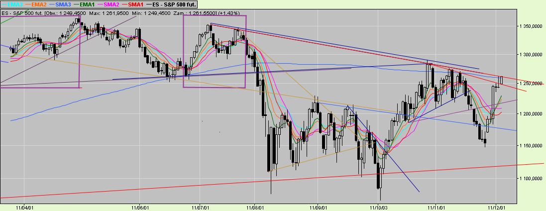 Na f-s&p500 "liznęliśmy" SMA200 (niebieska cienka) - dalej czeka jeszcze linia trendu (czerwona). Potem już tylko 'dmuchawce, latawce...' ;-)