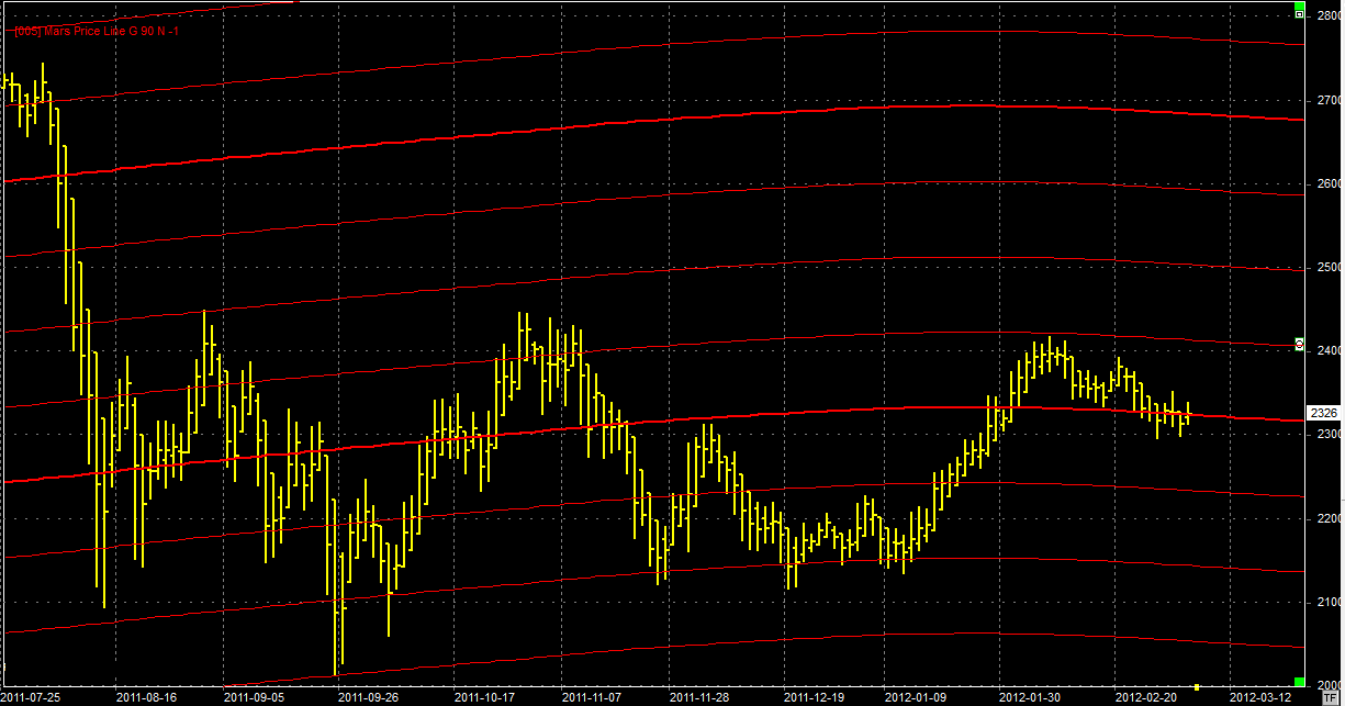 Na wykresie z liniami Marsa bronimy wsparcia na 2325. Jeżeli się to uda to powinniśmy powrócić do wzrostów. Do zamknięcia serii jeszcze trochę zostało ale wg mnie im bliżej będzie tej daty tym bykom będzie łatwiej. Jeżeli wsparcia nie uda się utrzymać to następne jest 100 pkt niżej.