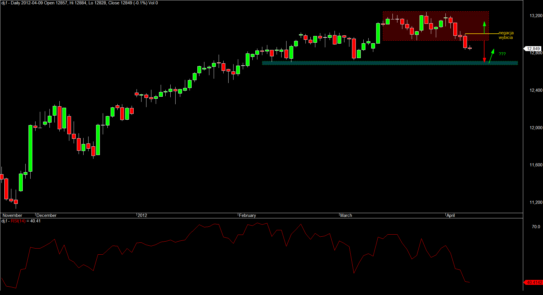 Dopóki obowiązuje czerwona obstawiałbym L, potwierdzeniem będzie biała świeczka w poświąteczny wtorek pod której wystąpienie na zasadzie analogii można próbować coś ugrać, W wypadku skrajnego optymizmu (wymagana pomoc rynków światowych) w kolejnych dniach zamkniecie luki i przejście 2300 da szanse na kolejne 50 pkt więcej.