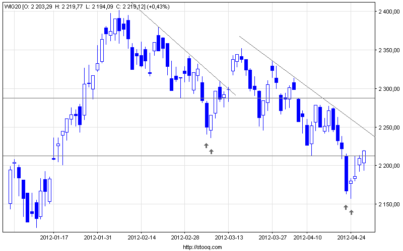Odbicie skonsumowało praktycznie świecę podażową z poniedziałku , zatem jej istotność ulega neutralizacji. Obecnie zbliżamy się do jakiś wyraźniejszych punktów oporu i od ich pokonania uzależniamy dalszą ocenę sytuacji.
