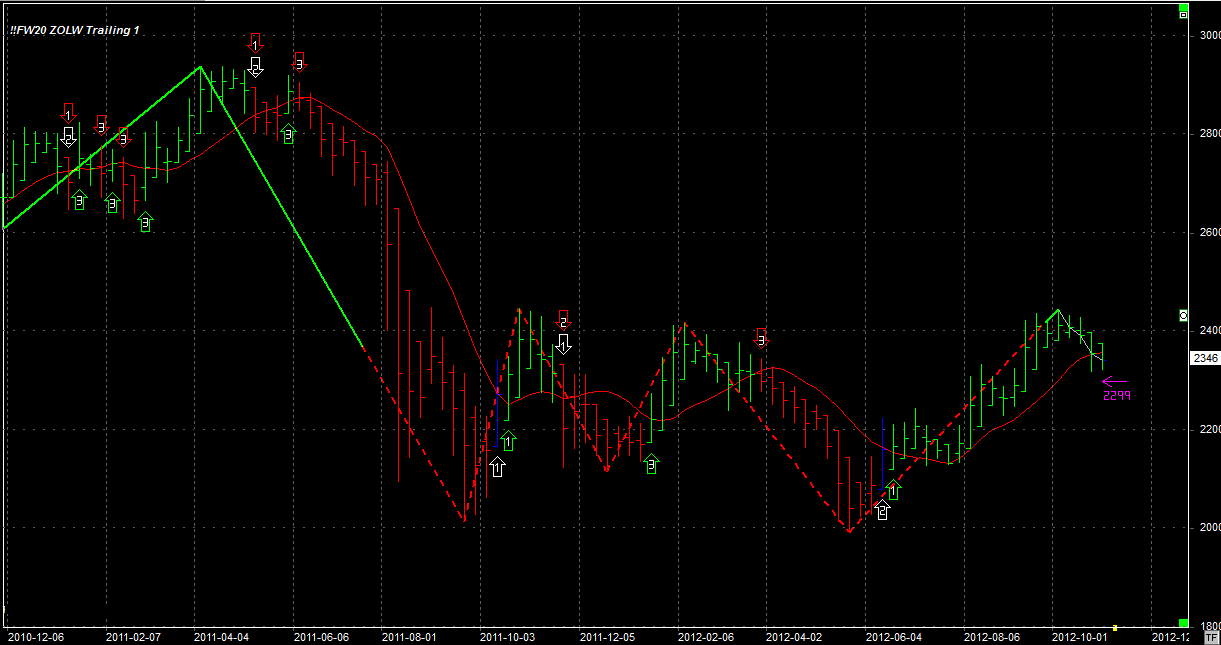 System utrzymuje długą pozycję po 2203 pkt. Stop na 2299 pkt.