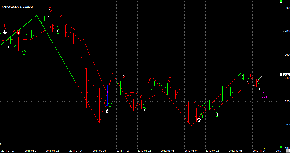 System zajmuje pozycję długą, zgodną z trendem - 2 szt. Stop 2271 pkt