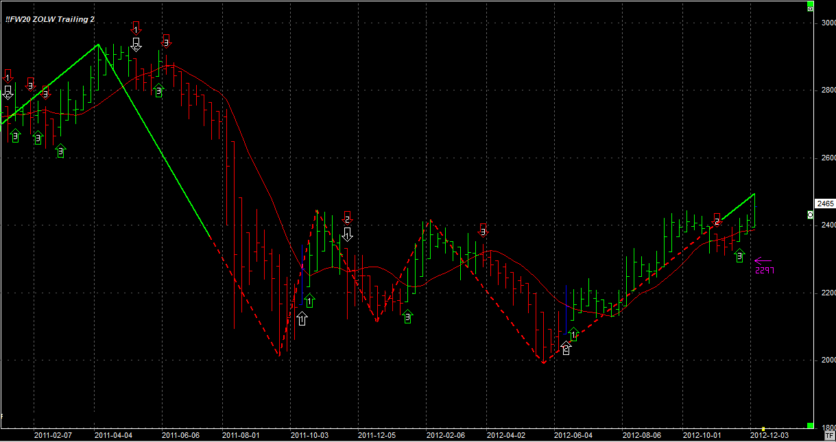 System zajmuje pozycję długą, zgodną z trendem - 2 szt. Stop 2297 pkt