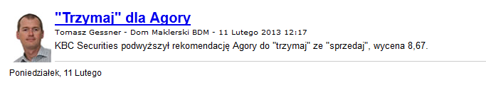 Ze stooqa - ponownie trzymaj co sprzedałeś od KBC :)