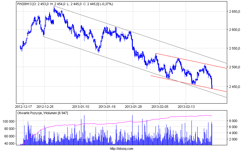 Przy braku pozytywnych stanów (co i tak się ostatnio nie przekłada) i klozecie na minusach (co może się przełożyć na jakąś lukę down) pasuje mi zejście jakąś paniką na open np i powrót w trakcie dnia up co da jakąś formację odwrotu na klozet. Gdzieś tak chwilę w dół do fibo 61,8 na bazowym i przedostatnie wsparciątko co daje 2424-30 pkt na indexie (górny wykres indexu) oraz do dolnego ograniczenia kanału na fucie które (dolny wykres fut) to już zatrzymywało wielokrotnie zjazd. Stamtąd odbitka ale bez przekopania górnych kresek (dolny wykres fut) to trwałej hozzzsy nie widzę.