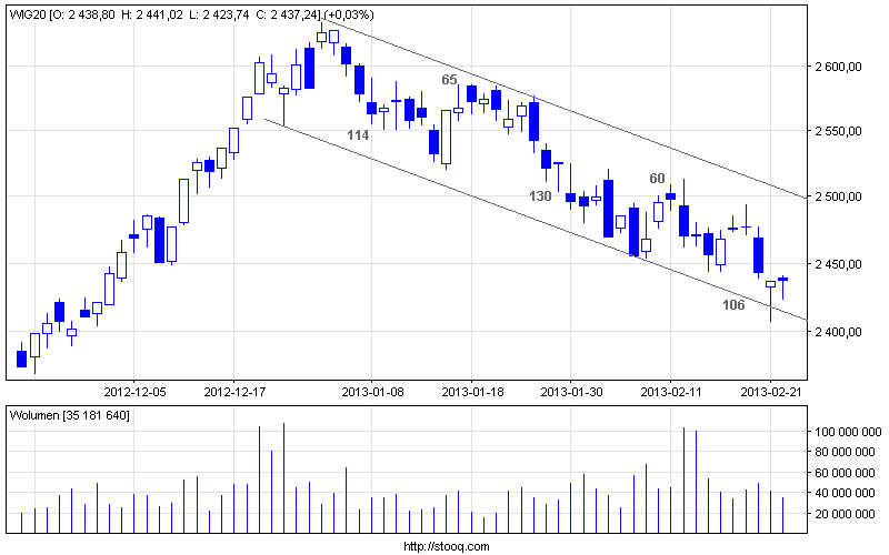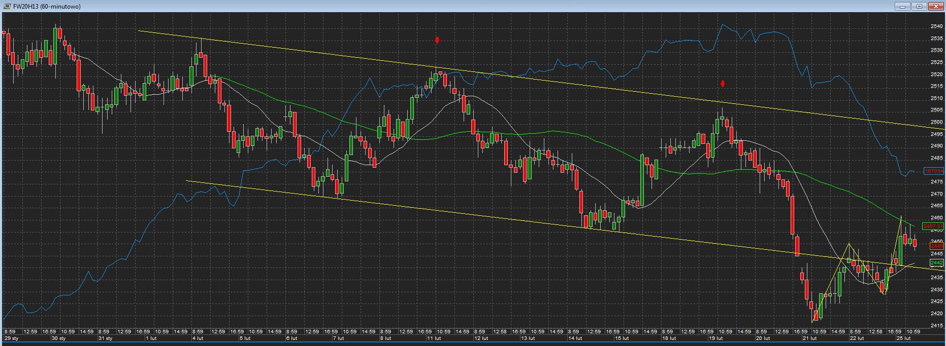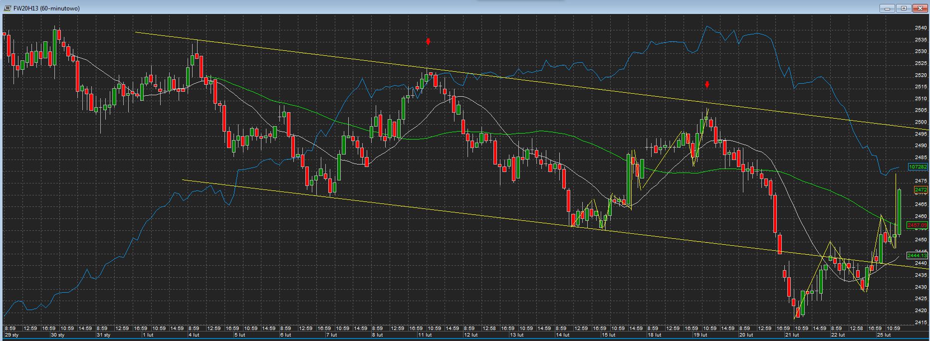 W trwalsze wzrosty uwierzę po zamknięciu luki i przejściu 2507 pkt na fut w cenach klozet co pozwoli na wyjście z dużego i małego kanału a przede wszystkim załamie dotychczasowy schemat LL i LH potwierdzający trend spadkowy.